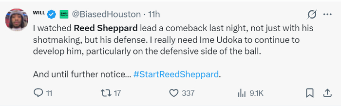 火记Will:昨晚我们看到了谢泼德的强势反弹,不仅表现在投篮技术上还有防守,我觉得乌度卡应该提升他的培养力度,尤其是继续帮他提升防守。